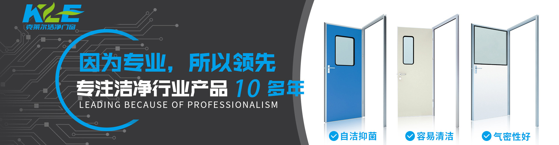廣東克萊爾潔凈科技有限公司是一家集生產(chǎn)、研發(fā)、銷售于一體的專業(yè)潔凈門窗生產(chǎn)企業(yè)。 公司擁有現(xiàn)代化標(biāo)準(zhǔn)廠房10000多平方米,配備全自動(dòng)靜電噴涂流水線及 3000平以上萬(wàn)級(jí)無(wú)塵生產(chǎn)車間,專供潔凈門及中空窗的生產(chǎn)裝配等。公司不斷引進(jìn)一流生產(chǎn)設(shè)備(如瑞士百超激光切割機(jī)、日本AMADA數(shù)控折彎?rùn)C(jī)、超聲玻璃清洗機(jī)等),采用國(guó)際最先進(jìn)的技術(shù)及裝備確保產(chǎn)品品質(zhì),是華南區(qū)域最具規(guī)模的專業(yè)潔凈鋼制門及中空潔凈窗生產(chǎn)廠家。公司在同行業(yè)率先通過(guò)ISO9001質(zhì)量體系認(rèn)證,并先后獲得多項(xiàng)專利認(rèn)證及榮譽(yù)證書。 KLE purification equipment Co., Ltd. is a set of production, research and development, sales in one of the professional clean doors and windows production enterprises.The company has a modern standard workshop of more than 10000 square meters, equipped with automatic electrostatic spraying line and more than 30 million level dust-free production workshop, specially for the production and assembly of clean doors and hollow windows. The company constantly introduces first-class production equipment (such as Swiss Baichao laser cutting machine, Japanese AMADA CNC bending machine...